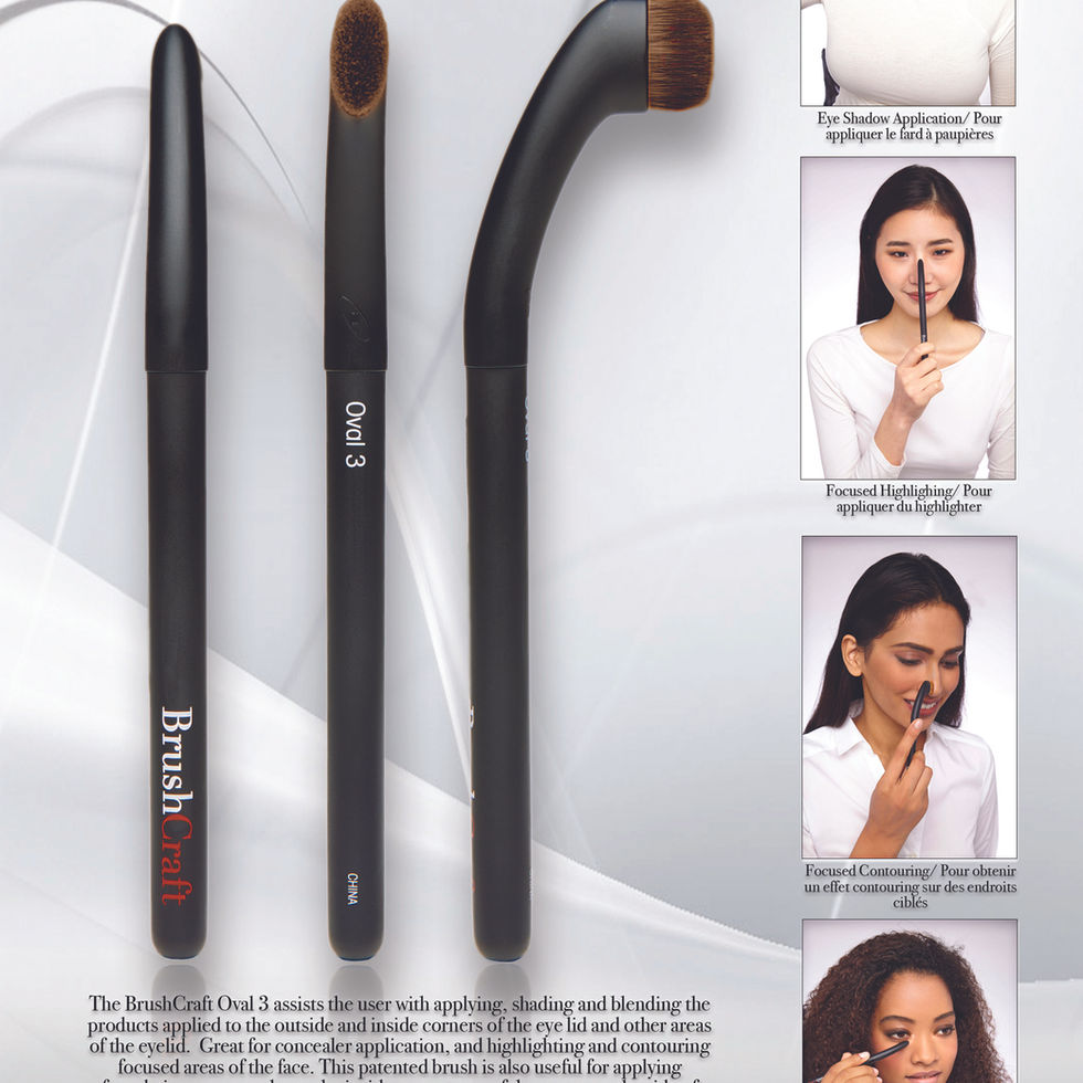 The Oval 3 brush is designed to be used with liquid, cream or powder products such as: